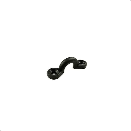 Suporte em plático preto para cabo e defensa simples. O suporte para defensa fabricado em plástico de alta resistência é ideal para ser utilizado em ambientes marinhos para a amarração de defensas na lateral da embarcação, com cabos. Pode ser fixado com parafusos ou rebites.