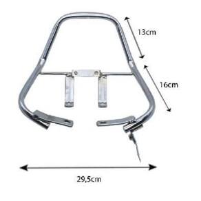 Alça desenvolvida com desenho ergonômico que proporciona conforto e segurança na qual o passageiro possa segurar-se. Possui curvatura traseira que se sobressai à parte traseira do banco da motocicleta. Produto produzido com materiais de alta qualidade. Para uma melhor instalação, procure um qualificado. Cor cromado. Aplicação Titan 150 ano 2004 até 2008 Medidas Distância entre furos frente 8cm Distância entre furos atrás 9cm Dimensões do suporte Largura 29,5cm Comprimento total 32cm Marca: Não Informado