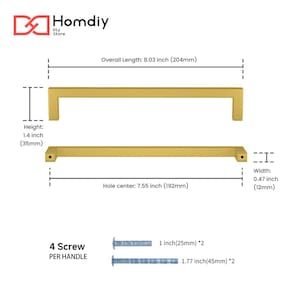 homdiy As ferragens para armários são o caminho a seguir ao projetar ou consertar sua cozinha ou banheiro. Eles não nos fazem cobrar marcações desnecessárias por seu hardware como algumas das outras grandes marcas. Portanto, oferece excelente hardware a um preço que você pode pagar. Vá em frente, compare, nós desafiamos você. - Serice perfeito: como um vendedor profissional, a homdiy se concentra na satisfação do cliente, se você tiver algum problema ou dúvida sobre nossos puxadores de gaveta de latão, sinta-se à vontade para entrar em contato conosco. Nossa equipe de serviço ajudará você a resolvê-lo até ficar satisfeito. Reembolso ou substituições. Sem risco. - Puxador quadrado moderno: com acabamento em latão escovado, as alças de armário homdiy darão ao armário um novo visual. Design quadrado, escolha ideal para cozinha, banheiro, armários de quarto e muito mais. Superfície lisa que permite que as alças mantenham uma aparência bonita. - MATERIAL: puxadores de gaveta homdiy feitos de aço inoxidável de alta qualidade, ocos, mas muito resistentes. Sem deixar impressões digitais, difícil de enferrujar, servirá por muitos anos. Nota: A cor é latão escovado, não ouro brilhante. - Medidas: centro do furo: 192 mm; Comprimento total: 8 polegadas (204 mm); Barra quadrada: 12 mm x 1/2 polegada (12 mm). Certifique-se do espaçamento dos furos do armário antes de comprar o equipamento do armário. - O que você recebe: você receberá 6 puxadores de armário de cozinha, cada puxador corresponde a parafusos padrão M4 de 2,5 cm e 3,9 cm para fácil instalação. Se você precisar de outros parafusos de comprimento, . Além disso, o puxador é embalado individualmente para evitar arranhões.