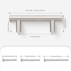 - Medidas: Furos centrais: 64 mm (2-1/2 polegada), comprimento total: 100 mm (4 polegadas), diâmetro: 12 mm (1/2 polegada), projeção: 32 mm (1-1/4 polegada); fácil de instalar com parafusos incluídos, 3 parafusos de tamanho incluem: 1 polegada (25 mm), 1,37 polegadas (35 mm), 1,7 polegadas (43 pol.) mm), se você precisa de outro comprimento de parafusos longos, informe-nos