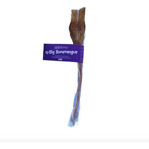 Big Bumerangue - Mordedor natural de tendão bovino para cães com mordida forte O Big Bumerangue da Mineiro Pet é um mordedor natural feito com tendão bovino desidratado, desenvolvido especialmente para cães que gostam de desafios e têm a mordida mais potente. Além de saboroso, é funcional e durável, promovendo benefícios físicos e comportamentais. Benefícios: Produto 100% natural, sem conservantes, corantes ou aromatizantes artificiais Alta resistência - ideal para cães de médio e grande porte Estimula o comportamento natural de roer e mastigar Auxilia na limpeza dos dentes e na prevenção do tártaro Contribui para o alívio do e da ansiedade Composição: Tendão bovino desidratado Indicação: Recomendado para cães de porte médio a grande, com alta necessidade de mastigação. Ótimo para oferecer como passatempo ou forma de enriquecimento ambiental. Apresentação: 1 unidade - Formato bumerangue, que facilita a pegada e aumenta o tempo de roedura