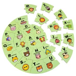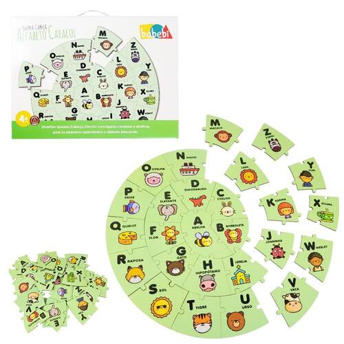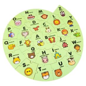 Conteúdo da Embalagem: 1 Quebra Cabeça Alfabeto Caracol com 26 Peças.