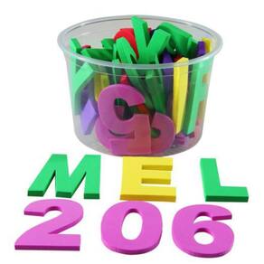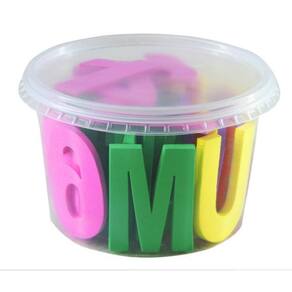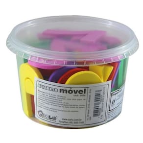 Alfabeto móvel eva carlu brinquedos 46 peças Confeccionado em eva composto por 01 jogo de alfabeto completo, 02 jogos de vogais e 01 jogo de números de 0 a 9, com tamanhos aproximados de 4 x 7 cm. Embalagem: pote plástico transparente.