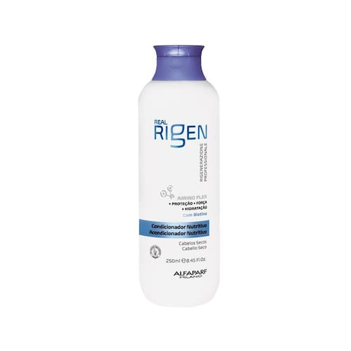 Real rigen condicionador nutritivo para cabelos normais ou secos. Proporciona um perfeito condicionamento dos cabelos. A nova geração da clássica linha alfaparf milano, agora com nova fórmula vegana. Real rigen se renova para atender as novas gerações que buscam produtos eficazes, conscientes e fáceis de usar. Perfeito para uso diário. Com aminoplex, um complexo de aminoácidos, nutrientes e proteínas que aceleram a regeneração e proporciona tripla ação na fibra capilar. A linha nutritiva de real rigen possui biotina e leite de amêndoa, um complexo vitamínico que atua no couro cabeludo e nos cabelos, promovendo maior penteabilidade, suavidade e brilho. Protege quanto ao desbotamento da cor cosmética e reduz os danos causados por procedimentos térmicos e mecânicos secador, prancha e modelador de cachos . Teste instrumental realizado com toda a linha real rigen nutritiva vs tratamento base. Resultado desejado:nutrição Sugestão de uso:1. Depois de lavar os cabelos com real rigen shampoo nutritivo, distribuir o real rigen condicionador nutritivo uniformemente em todo o comprimento do fio;2. Massagear, pentear, deixar agir por 3-5 minutos e enxaguar. Itens inclusos: 1 condicionador alfaparf milano professional real rigen nutritivo 250ml Marca: Não Informado
