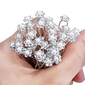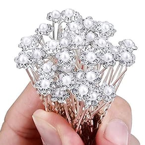- Material: liga, strass e pérola artificial, tamanho: diâmetro das flores de aproximadamente 1 cm, comprimento do pino de cabelo de aproximadamente 6,3 cm