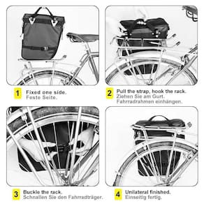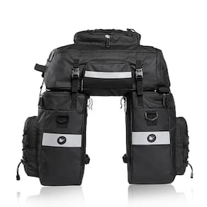 Alforge Bolsa Mochila Tripla Bike Bagageiro Traseiro 75L Este alforge/bolsa/mochila da Rhinowalk é uma obra prima para ciclistas amantes de bikepacking. Pode armazenar incríveis 75L de equipamento, além de possuir diversas outras funções.Possui dois alforges laterais com engate rápido no bagageiro, que podem virar bolsas.Na parte superior possui outra bolsa totalmente removível, que vira facilmente uma mochila.Fabricado em poliéster impermeável, sendo resistente a chuvas pouco intensas. Mas no caso de chuva intensa, pode-se utilizar a capa protetora que acompanha o produto. Material: PoliésterPeso: 2300g Capacidade total: 75LModelo: RK19665Cor das bolsas: preta sem detalhes em amarelo Conteúdo:- 2 alforges laterais 22L, 34cm x 29cm x 15cm - 1 bolsa superior 31L, 49cm x 31cm x 15cm - 1 alça para ombro- 1 capa de chuva amarela para cobertura completa das bolsas- manual Marca: Rhinowalk