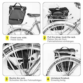 Alforge Bolsa Mochila Tripla Bike Bagageiro Traseiro 75L Este alforge/bolsa/mochila da Rhinowalk é uma obra prima para ciclistas amantes de bikepacking. Pode armazenar incríveis 75L de equipamento, além de possuir diversas outras funções. Possui dois alforges laterais com engate rápido no bagageiro, que podem virar bolsas. Na parte superior possui outra bolsa totalmente removível, que vira facilmente uma mochila. Fabricado em poliéster impermeável, sendo resistente a chuvas pouco intensas. Mas no caso de chuva intensa, pode-se utilizar a capa protetora que acompanha o produto.