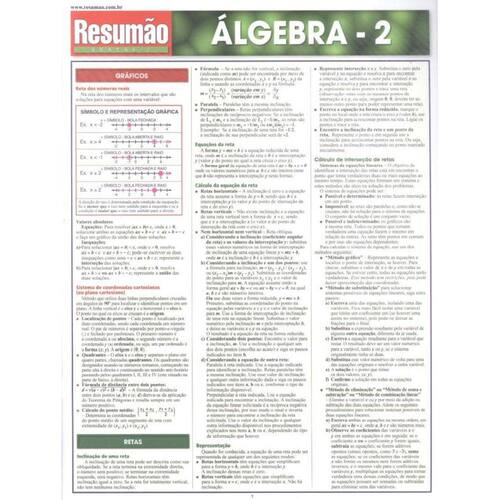 O Resumão Álgebra 2 Complementa O Resumão Álgebra 1 E Juntos Formam Um Inestimável Instrumento De Apoio Para Compreender E Estudar Álgebra Conteúdo Gráficos Reta Dos Números Reais E Sistema De Coordenadas Cartesianas Retas Inclinação De Uma Reta Equações Da Reta Cálculo Da Equação Da Reta Representação Da Reta Cálculo De Interseção De Retas Inequações Lineares Conceitos Básicos Definições Notação Funções Funções Polinomiais Função Exponencial Funções