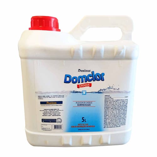Mode de usar: Mantenha o pH da piscina entre 7,2 a 7,8. Ajuste a alcalinidade entre 80 à 120 ppm. Adicione 4 mL de Algicida de Choque Domclor para cada m³ (1.000 litros) de água a ser tratada. No dia seguinte escove toda a piscina deixe descansar e aspire o fundo para retirar as algas mortas, na posição drenar e filtre a água regularmente.