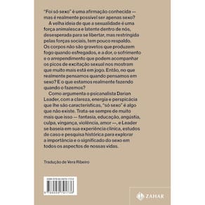 Um estudo instigante e acessível sobre as razões pelas quais fazemos sexo, do premiado psicanalista Darian Leader. “Foi só sexo” é uma afirmação familiar, mas isso é realmente possível? A velha ideia de que a sexualidade é uma força animalesca e latente dentro de nós, desesperada para se libertar, mas restringida pelas forças sociais, tem pouco respaldo. Os corpos não são gravetos que produzem fogo quando esfregados, e a dor, o sofrimento e o arrependimento que podem acompanhar os picos de excitação sexual nos mostram que muito mais está em jogo. Então, no que realmente pensamos quando pensamos em sexo? E o que estamos realmente fazendo quando o fazemos? Como argumenta o aclamado psicanalista Darian Leader, com a clareza, energia e perspicácia que lhe são características, “só sexo” é algo que não existe. Trata-se sempre de muito mais que isso — fantasia, educação, ansiedade, culpa, vingança, violência, amor —, e Leader se baseia em sua experiência clínica, estudos de caso e pesquisa histórica para explorar a importância e o significado do sexo em todos os aspectos de nossas vidas.