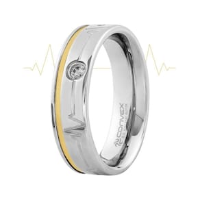 Aliança em Aço Heart Beat Shine 6mm com Filete em Ouro 10K e Zircônia 2.5mm