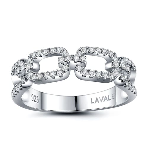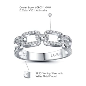 LAVALE Aliança de casamento de moissanita para mulheres, anel de diamante criado em laboratório VVS1 cor D Twist Link, anel empilhável Half Eternity, anel de corrente de prata esterlina S925, Metal,