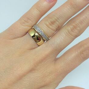 Aliança Larga Semi Joia, banhado a Ouro 18k, e Aparador com Cravação de Zircônias e detalhe em Ródio.