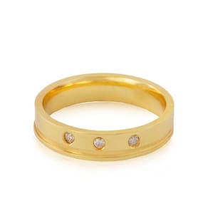 Pedra: diamante Cor da Pedra: incolor / branco Quantidade de Pedras: 3 pedras Largura: 4 mm Espessura: 1 mm Cor: dourado Material: ouro 18K Peso: 5.10 gramas aprox. Estilo: noivado/casamento, Elegante, Moderno Marca: Não Informado Ean: 7894572027663