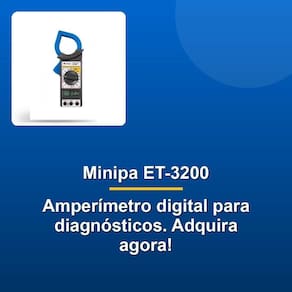 A segurança é outro destaque do Minipa ET-3200, que atende à categoria CAT II 1000V conforme o padrão IEC 1010. O equipamento é protegido contra sobretensões e sobrecorrentes, suportando até 1200A AC por 1 minuto e oferecendo robustez para o uso em diferentes cenários. A indicação automática de polaridade negativa e alerta de bateria fraca no display aumentam a praticidade durante o uso, enquanto sua alimentação por uma bateria de 9V garante autonomia para trabalhos prolongados.