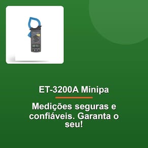 Compacto e leve, com dimensões de 248x70x38,5 mm e peso de apenas 337 g, este alicate amperímetro é fácil de transportar e manusear. Alimentado por uma bateria de 9V, ele é ideal para quem busca praticidade sem abrir mão de desempenho. Com garantia de 12 meses, o Minipa ET-3200A é a escolha perfeita para quem precisa de um instrumento confiável, durável e eficiente para medições elétricas.