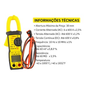 Com capacidade de medir corrente alternada, tensão AC/DC, resistência, frequência, capacitância e temperatura, o aparelho oferece ainda detecção de tensão sem contato (NCV), função LowZ (baixa impedância), retenção de dados e desligamento automático para maior economia de energia.