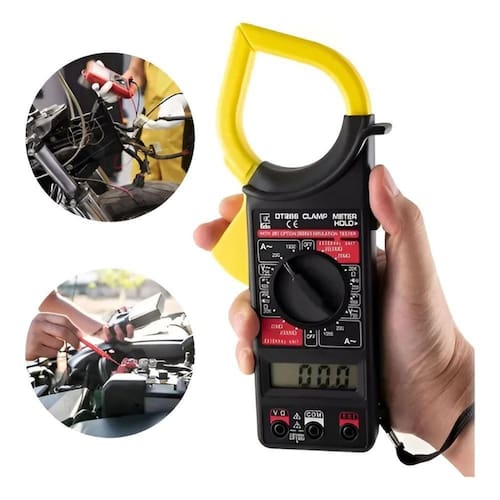 Alicate Amperímetro Digital Portátil Teste Tensão Elétrica Projetado para uso por eletricistas, técnicos e usuários que necessitam um instrumento preciso, confiável e sempre pronto para uso. A tela de cristal líquido possui mostrador de fácil leitura, para todas as condições de iluminação. O ponto decimal, posicionado automaticamente, e o sinal de polaridade negativa (-) acendem para medição em corrente contínua, o que permite uma leitura direta na unidade escolhida utilizando a chave seletora. Quando não parecer sinal, considere como polaridade positiva (+). Em caso de faixa de medição acima do permitido pelo aparelho, a tela ficará em branco (apagada). A tela também tem indicação de bateria com carga baixa. Caso isso ocorra, favor trocar a bateria por uma nova, com especificação 9.0 V zinco carbono comum ou alcalina. Itens Inclusos: - 01 Alicate Amperímetro - 02 Cabos de Teste - 01 Estojo de Proteção
