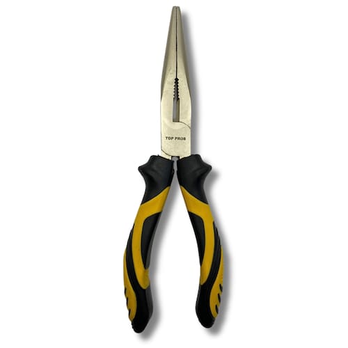 O alicate de bico reto de 8 polegadas, composto por aço carbono niquelado e polipropileno com revestimento termoplástico. É uma ferramenta que possui mandíbulas estreitas, retas e com serras, ideal para agarrar, segurar, dobrar e manipular objetos em espaços apertados. A niquelação é uma camada de revestimento que protege o alicate de corrosão. Perfeito para tarefas precisas como eletrônica, montagem de peças e manutenção. A marca Top Pros é reconhecida pela excelência na qualidade e praticidade dos seus produtos. Ela faz parte de um grupo de outras marcas já fortemente reconhecidas no ramo de persianas, decoração, bazar e utilidades domésticas e agora traz o seu conhecimento na área das ferramentas.