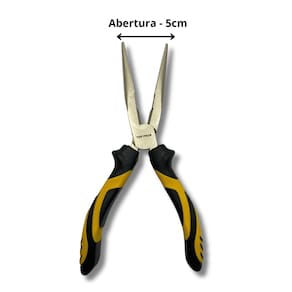 - ALICATE DE BICO RETO 8 POLEGADAS - Comprimento do Alicate: 200mm - Material do Cabo: Polipropileno com borracha termoplástica - Material da Ferramenta: Aço carbono niquelado - Tamanho da abertura: 5cm - Suporta fio de aço de 1,4mm - Diferencial do produto: Robusto