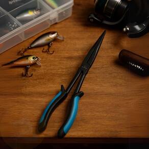 Alicate Bico Longo Reto para Pesca Profissional - DEYU Alta performance e precisão para pescadores exigentes O Alicate de Bico Longo Reto DEYU é a ferramenta ideal para quem busca eficiência, durabilidade e conforto durante a pesca. Desenvolvido com aço carbono de alta resistência, ele oferece excelente poder de corte, manuseio seguro e precisão nas operações, mesmo nas condições mais exigentes. Principais Características: Bico Longo e Reto: Ideal para alcançar áreas de difícil acesso e auxiliar na remoção de anzóis com segurança. Aço Carbono Reforçado: Alta durabilidade, resistência à corrosão e excelente capacidade de corte. Pegada Ergonômica: Cabo com design anatômico e revestimento emborrachado antiderrapante, proporcionando conforto e firmeza. e Hobby: Perfeito para pescadores profissionais e amadores. Mola de Retorno: Facilita o uso contínuo com menor esforço. Especificações Técnicas: Marca: DEYU Material: Aço Carbono Tipo de Bico: Longo Reto Comprimento Aproximado: 28 cm Cor do Cabo: Preto com detalhes em azul Peso: Leve e resistente Função: Corte, remoção de anzóis, manuseio de iscas e acessórios Indicado para: Pesca em água doce e salgada Reparos rápidos no equipamento de pesca Manuseio de peças pequenas ou afiadas Atividades que exigem precisão e segurança Benefícios: Prolonga a vida útil do equipamento de pesca Evita acidentes durante a remoção de anzóis Ideal para montar ou desmontar iscas e acessórios com facilidade Ferramenta essencial na caixa de qualquer pescador