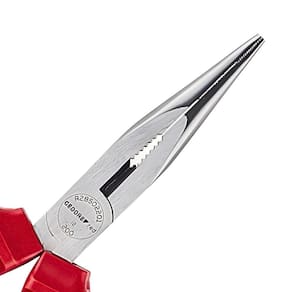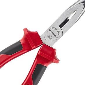 O Alicate tipo telefone GEDORE red é muito utilizado em manutenções mecânicas e em reparos elétricos. Seu bico fino e alongado permite manusear objetos em pequenos espaços. Seu cabo isolado permite trabalhar em redes energizadas. O cabo é feito de dois materiais. Fabricado em aço GEDORE red. Produzido conforme norma DIN/ISO. Isolamento 1000V conforme NBR9699. Acabamento polido com bicos lixados, proporcionando melhor apresentação do produto.
