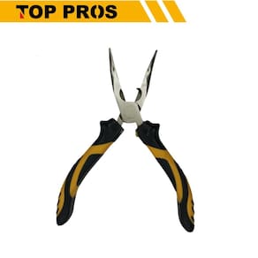 O alicate de bico torto 8 polegadas, composto por aço carbono niquelado e polipropileno com Borracha termoplástica. Possui mandíbulas alongadas e curvas, projetadas para acessar espaços apertados E executar operações precisas, como: torcer fios, manipular componentes eletrônicos e cortar arames finos. A niquelação é uma camada de revestimento que protege o alicate de corrosão. A marca top pros é reconhecida pela excelência na qualidade e praticidade dos seus produtos. Ela faz parte de um grupo de outras marcas já fortemente reconhecidas no ramo de persianas, decoração, Bazar e utilidades domésticas e agora traz o seu conhecimento na área das ferramentas.