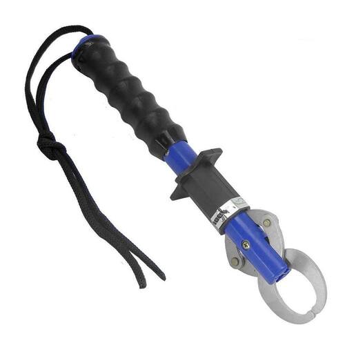 Prático e seguro, o alicate de contenção ou pega-peixe é indicado para todos os tipos de peixe. Balança embutida com capacidade para 21 kg. Produzido em alumínio de alta qualidade. Depois de preso na mandíbula inferior, o peixe não consegue escapar. Por prender em dois pequenos pontos o peixe sofre menos lesões do que com os alicates convencionais. Manopla em borracha confortável e antiderrapante e tira de segurança.