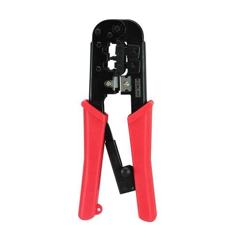 Alicate Crimpador Para Cabos 056-5570 Rj11, Rj12, Rj45 E Sc568R - Kokay Características: - marca: kokay - modelo: 056-5570 Especificações: - cor: vermelho e preto - fácil de usar e eficiente - desenvolvido para cortar, desencapar e crimpar - com mecanismo de catraca - serve para crimpagem de rj11, rj12 e rj45 Garantia 1 ano de garantia (9 meses de garantia contratual junto ao fabricante + 3 meses referentes à garantia legal, nos termos do artigo 26, ii, do código de defesa do consumidor)