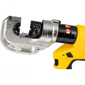 Possui controle eletrônico e visor digital que indica os ciclos de crimpagem, nível de carga da bateria e possíveis falhas. Conta com sistema hidráulico de alta pressão, sistema de segurança em caso de sobreaquecimento do motor, cabeça giratória em 350, alça tiracolo e maleta que facilita o transporte.