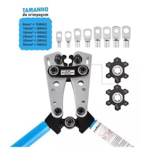 - Alicate Crimpador de Terminal de 6 a 50mm é uma ferramenta projetada para garantir conexões seguras e confiáveis em uma ampla gama de aplicações;