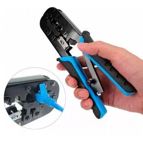 O alicate para crimpagem RJ45 e RJ11 é o produto indicado para profissionais que trabalham com telefonia, infraestrutura e manutenção de redes. O alicate reúne diversas funções e facilita o trabalho desses profissionais, que não precisam mais usar diversos instrumentos para tarefas como cortar, desencapar e fixar conectores RJ45 e RJ11. O produto é feito de materiais de alta qualidade para aumentar a durabilidade. Uma ferramenta, compacta, funcional e indispensável.