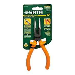 Alicate de Bico Meia Cana Isolado 6equot; SATA ST70041AST Alicate bico meia cana com dupla têmpera no corpo, gerando mais resistência, com cabo fácil de limpar. Contém cabo ergonômico com um maior conforto e abas protetoras proporcionando uma maior segurança. Utilizar apenas para o corte e pega de materiais diversos.