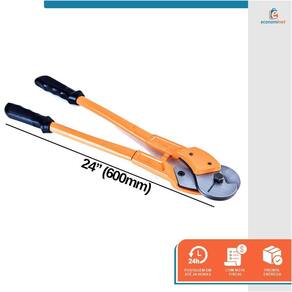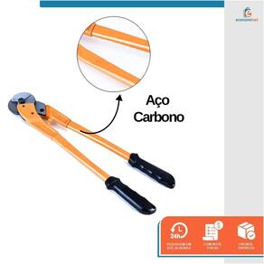Alicate cortador de cabo de aço, super resistente, produzido em aço carbono, com 24 aprox. 600mm de comprimento, versatilidade com alto poder de corte, cabo emborrachado ergonômico extra longo para maior força de alavancagem, antiderrapante para mais proteção e melhor aderência. Ideal para cortar cabos de aço de até 14mm de diâmetro, com mordentes curvos para evitar esgarçamento dos fios do cabo de aço.
