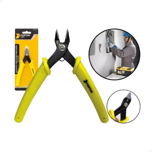 Alicate de Corte de Precisão Fertak 1102 - Corte Fino e Preciso para Eletrônica e Artesanato Descrição: O Alicate de Corte de Precisão Fertak 1102 é ideal para trabalhos que exigem cortes delicados e exatos, como montagens eletrônicas, artesanato, bijuterias e modelismo. Possui lâminas afiadas de alta precisão e cabo ergonômico que proporciona conforto e firmeza no manuseio, garantindo desempenho em tarefas de detalhe. Características Técnicas: Categoria/tipo: Alicate de corte de precisão Marca: Fertak Referência: 1102 Material: Aço carbono de alta resistência Empunhadura: Cabo emborrachado ergonômico Aplicação: Cortes finos em fios, cabos, componentes eletrônicos, bijuterias e artesanato Conteúdo da Embalagem: 1 Alicate de corte de precisão Fertak 1102 Marca: Não Informado Ean: 7908642003447