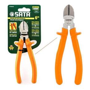 Alicate de Corte Diagonal 6equot; SATA ST70024AST - Durabilidade do corte superior - Mais resistência e alta durabilidade com dupla têmpera no corpo e têmpera especial no corte - Mais conforto e segurança com cabo ergonômico e com abas protetoras - Resistente a óleo - Cabo isolado até 1000V e NR10, de acordo com a forma Abnt Nbr 9699 - Cabo PVC fácil de limpar - Aplicação: Cortar cabos e arames. Utilizando também em trabalhos de eletricidade e de artesanato em geral - Tamanho: 6