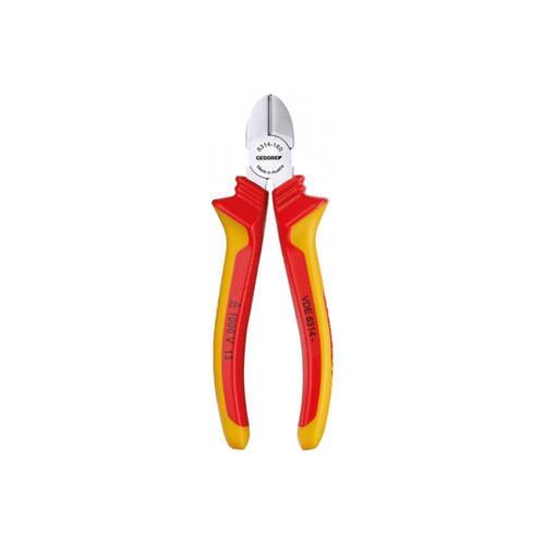 Corpo em aço Gedore-Vanadium e empunhadura em polímero anti-chamas nas cores vermelho e amarelo, padrão Gedore. Acabamento niquelado, cromado e polido. Empunhadura ergonômica e antideslizante, com abas protetoras arredondadas para maior conforto e segurança. Produzida por injeção, propiciando isolação até 1000 V, conforme norma EN 60900 / IEC 60900, submetida à ensaios de: impacto, tensão elétrica, aderência, inflamabilidade e pressão/penetração. Utilizar ferramentas isoladas VDE, em tensão máxima de 1000 V em corrente alternada e 1500 V em corrente contínua, conforme norma EN 60900 / IEC 60900. Atende com segurança a norma regulamentadora NR 10 - Segurança em Instalações e Serviços em Eletricidade, possui certificado de isolação.Ratamento térmico total e corte temperado por indução, com dureza de 63 - 65 HRC. Com cabeça estreita ideal para espaços reduzidos. A geometria do corte está posicionada em diagonal ao corpo do alicate. Indicado para corte de arame com dureza média, diâmetro máximo de 1,6 mm e com resistência à tração 1600 N/mm. Para trabalhar em montagens e reparos eletroeletrônicos. O alicate Ref. VDE 8314- 160 H é fornecido em blister para autosserviço.Especificações técnicas:- Referência: VDE 8314 - 160 H - Tamanho: 160mm / 6.1/2 Pol. - Capacidade máxima de corte de arame com dureza média e resistência à tração 1600 N/mm: 1,6- Peso: 0,231 Kg- Corpo em aço Gedore-Vanadium e empunhadura em polímero anti-chamas nas cores vermelho e amarelo, padrão Gedore.- Acabamento niquelado, cromado e polido.- Empunhadura ergonômica e antideslizante, com abas protetoras arredondadas para maior conforto e segurança.- Produzida por injeção, propiciando isolação até 1000 V, conforme norma EN 60900 / IEC 60900.