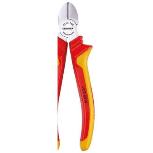 Corpo em aço Gedore-Vanadium e empunhadura em polímero anti-chamas nas cores vermelho e amarelo, padrão Gedore. Acabamento niquelado, cromado e polido. Empunhadura ergonômica e antideslizante, com abas protetoras arredondadas para maior conforto e segurança. Produzida por injeção, propiciando isolação até 1000 V, conforme norma EN 60900 / IEC 60900, submetida à ensaios de: impacto, tensão elétrica, aderência, inflamabilidade e pressão/. Utilizar ferramentas isoladas VDE, em tensão máxima de 1000 V em corrente alternada e 1500 V em corrente contínua, conforme norma EN 60900 / IEC 60900. Atende com segurança a norma regulamentadora NR 10 - Segurança em Instalações e Serviços em Eletricidade, possui certificado de isolação. Ratamento térmico total e corte temperado por indução, com dureza de 63 - 65 HRC. Com cabeça estreita ideal para espaços reduzidos. A geometria do corte está posicionada em diagonal ao corpo do alicate. Indicado para corte de arame com dureza média, diâmetro máximo de 1,6 mm e com resistência à tração 1600 N/mm. Para trabalhar em montagens e reparos eletroeletrônicos. O alicate Ref. VDE 8314- 160 H é fornecido em blister para autosserviço. Especificações técnicas: - Referência: VDE 8314 - 160 H - Tamanho: 160mm / 6.1/2 Pol. - Capacidade máxima de corte de arame com dureza média e resistência à tração 1600 N/mm: 1,6 - Peso: 0,231 Kg - Corpo em aço Gedore-Vanadium e empunhadura em polímero anti-chamas nas cores vermelho e amarelo, padrão Gedore. - Acabamento niquelado, cromado e polido. - Empunhadura ergonômica e antideslizante, com abas protetoras arredondadas para maior conforto e segurança. - Produzida por injeção, propiciando isolação até 1000 V, conforme norma EN 60900 / IEC 60900. Marca: Não Informado