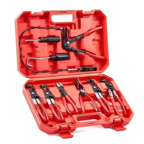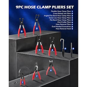Especificações: Material: 45# Aço (metal), plástico (alças e caixa) Cor: preto (metal), vermelho (alças e caixa) Dimensões da caixa de ferramentas: 17,6 x 11,7 x 3,5 polegadas (44,7 x 29,8 x 9 cm) Flex.Comprimento da linha do alicate da braçadeira da mangueira: 2 pés (61 cm) Peso: 3 kg Garantia: 1 ano Conteúdo da embalagem: 1 alicate de mangueira flexível 1 alicate de colarinho estilo Circle-R / Clic-R 1 alicate de clipe giratório para mandíbula 1 x alicate de grampo de arame de mola com fenda cruzada/mandíbula giratória 1 alicate de braçadeira de mangueira de banda plana. 1 alicate de braçadeira de mangueira angular de 45° 1 alicate de remoção de mangueira. 1 x conector de substituição para o alicate de braçadeira de mangueira 1 chave de fenda (Phillips e cabeça chata). 1 gancho de remoção de mangueira. 1 luva de trabalho. 1 manual de instruções (idioma português não garantido). - Conjunto de alicates de mangueira universal: inclui alicate de grampo de mangueira com cabo de longo alcance, alicate de colar tipo Clic-R, clipe de banda de mandíbula giratória e alicate de clipe de fio de mola, alicate de braçadeira de mangueira plana regular e angular, alicate de remoção de mangueira, uma chave de fenda de duas cabeças e um gancho de mangueira para reparo, remoção e substituição de mangueira de combustível, óleo e água em motores de carros, caminhões e motocicletas. - Ajuste perfeito: ter ferramentas construídas especificamente eliminará soluções demoradas e manipulações, facilitando o funcionamento da sua mangueira. Este conjunto de caixa de ferramentas de braçadeira de mangueira funciona com braçadeiras de mangueira de plástico e metal de 11/40.6 cm a 2 1/5.1 cm. - Design de bloqueio: os alicates de 5 molas são capazes de travar no lugar para liberar suas mãos e acelerar seu trabalho de reparo. - Durável e fácil de usar: se este kit parecer opressor, os mecânicos amadores podem usar as instruções incluídas para descobrir o que usar e onde. Para profissionais, a capa resistente moldada por sopro mantém as coisas organizadas e portáteis; as alças de plástico resistentes reduzem a fadiga durante o uso; e o acabamento de óxido preto evita ferrugem e corrosão, permitindo que você aproveite essas ferramentas de aço estrutural de carbono por muitos anos. - Satisfação garantida: Peça agora, sabendo que seu kit de ferramentas é apoiado pela garantia da Orion Motor Tech e atendimento ao cliente amigável.