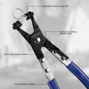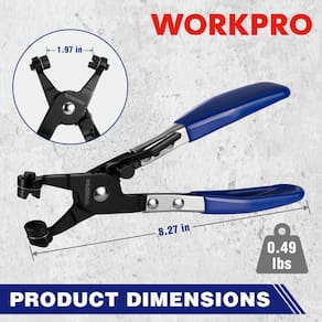 WORKPRO Alicate de braçadeira de mangueira, ferramenta de braçadeira de mangueira com faixa plana giratória para remoção e instalação de braçadeiras de mangueira de mola, para mangueira de água de óleo combustível automotivo - Mandíbulas flexíveis: A ponta rotativa do alicate de fixação permite operação em vários ângulos e fácil acesso a espaços estreitos. Com uma abertura máxima de 5 cm, é adequado para a maioria dos grampos de mangueira, oferecendo versatilidade e praticidade - Economia de mão de obra e eficiente: a ferramenta de grampo de mola possui um design acionado por mola com uma alavanca de polegar para liberação rápida, economizando tempo e garantindo instalação e remoção seguras da braçadeira da mangueira - Material premium: Feito de aço carbono de alta qualidade, os alicates de braçadeira de mangueira WORKPRO são tratados termicamente, forjados e enegrecidos para dureza excepcional, tenacidade, durabilidade e resistência à corrosão - Alça confortável: a alça é feita de material de PVC e tem propriedades antiderrapantes, o que pode aliviar a fadiga das mãos e melhorar a eficiência do trabalho - Ampla aplicação: a ferramenta de remoção de braçadeira de mangueira é ideal para manutenção automotiva, petróleo e fabricação de máquinas. Oferece uso versátil, operação conveniente e fácil portabilidade