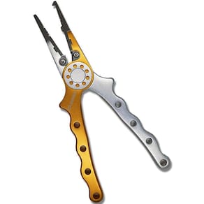 Alicate De Pesca Multiuso Alumínio Jignesis FAP-053 Cor: Amarelo Alicate de Alumínio Multiuso Especial para cortes de multifilamentos, fluorocarbon, nylon, fios de cobre e fio de aço flexível. Ideal para abertura de split ring, remoção de anzóis, confecção de lideres, encastoados e aperto de luvas. Possui afiadas e resistentes lâminas de corte. Anatômico resistente e extremamente leve. Indispensável em uma pescaria. Especificações: - Incluso: 1 peça - Comprimento Total: 18cm - Comprimento da Ponta: 5,5cm - Peso: 104gr - Composição: 98% Alumínio e 2% Carbono Tungstênio - Aluminio Aeronáutico - Anodizado Resistênte à Corrosão - Lâminas de Carbono Tungstênio - Ponteira Removível e Intercambiável - Corta Monofilamento e Multifilamento - Cor: Dourado ou Roxo