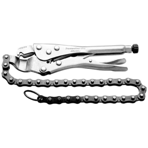 Alicate de Pressão tipo Corrente 10 Tramontina PRO O Alicate de Pressão tipo corrente da Tramontina PRO é muito utilizado para apertar tubos endurecidos em locais de difícil acesso além de facilitar a colocação e remoção de filtros de óleo. Maior resistência, conforto e segurança em suas mãos. Informações Gerais Corrente em aço especial. Corpo formado por chapas conformadas. Acabamento cromado. Abertura regulável. Possui alavanca para destravar. Os alicates de corte são testados quanto à resistência ao desgaste do gume de corte em máquina de ensaio específica. Os alicates possuem dureza diferenciada no gume de corte e no corpo. Utilizado para apertar tubos endurecidos onde uma chave para tubo não tem acesso. Não é recomendado para tubos não metálicos. Também pode ser utilizado para colocar e remover filtros de óleo. As ferramentas são produzidas e testadas conforme normas específicas. Uso seguro e adequado Use óculos, luvas e outros equipamentos de proteção individual EPIs de acordo com a tarefa a ser executada. Observe as indicações de uso de cada tipo de alicate. Nunca utilize um alicate para cortar arames endurecidos, a não ser que tenha sido projetado para este fim. Nunca utilize o alicate como martelo. Ele pode trincar ou até mesmo quebrar. Nunca exponha os alicates ao calor excessivo. Isto pode alterar o tratamento térmico aplicado no corte e afetar o seu desempenho. Sempre posicione o corte do alicate perpendicularmente ao eixo do arame para uma operação mais rápida e segura. Utilize alicates isolados, identificados pela marcação 1.000 V no cabo, quando for necessário trabalhar em locais com corrente elétrica. Importante: nestes casos, inspecione a integridade da isolação elétrica, e, se aparecerem trincas na isolação, suspenda o uso imediatamente. Nunca aumente o comprimento dos cabos dos alicates. Isto amplifica a força exercida sobre a cabeça da ferramenta podendo quebrá-la. Nunca utilize o alicate em porcas e parafusos. Para estes trabalhos, indica-se o uso de chaves de aperto. Lubrifique periodicamente a articulação. Isto aumenta a vida útil do produto e melhora sua performance. Manter os alicates longe do alcance de crianças. Armazene em local limpo e seco. Garantia: 90 dias para vícios ou defeitos de fabricação.