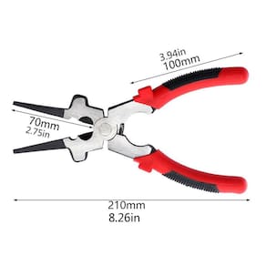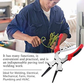 Características destacadas 1. Multifuncional: remoção de respingos, martelo, remoção/instalação de pontas, corte de fio, remoção/instalação de bicos, trefilação e muito mais. 2. Projetado com aço de alto carbono 45 # de qualidade, com alta dureza e não é fácil de deformar. 3. A alça é projetada como uma capa de borracha de duas cores, possui partículas antiderrapantes, o que melhora muito a eficiência do trabalho. 4. Os alicates de soldagem são essenciais para todos os soldadores MIG. 5. Ideal para soldagem, elétrica, mecânica, agrícola, doméstica, encanamento e HVAC. Veja menos