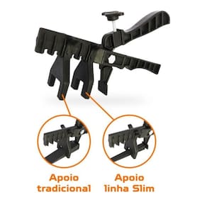 A simples troca de apoio permite que um único alicate possa aplicar os niveladores de porcelanato tradicionais (largos) como também os niveladores de piso SLIM, ou seja, é possível utiliza-lo em cunhas com 23mm ou 14mm.