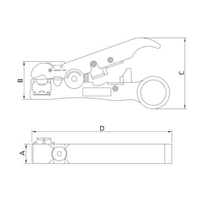 Desencapa cabos coaxiais RG59, RG6, RG7 e RG11, cabos de rede e cabos de telefonia.