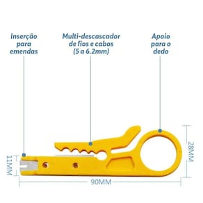 Alicate descascador fios desencapador cabos chave keystone punch down inserção fêmea rede rj45 Se você está buscando um conjunto de ferramentas de alta qualidade para simplificar a instalação e manutenção de redes de computadores, o alicate descascador de fios e chave keystone punch down é a escolha perfeita. Este conjunto versátil foi projetado para facilitar a sua vida ao lidar com cabos de rede rj45, tornando o processo de instalação de redes mais eficiente e preciso. Recursos e benefícios: alicate descascador de fios:- facilita a remoção precisa do revestimento externo dos cabos, tornando o processo de descascamento rápido e sem esforço.- compatível com uma ampla variedade de diâmetros de cabos, garantindo versatilidade em suas instalações.- construção robusta e durável para um uso prolongado. chave keystone punch down:- perfeita para inserção de conectores keystone rj45 em painéis e tomadas.- garante conexões sólidas e confiáveis, essenciais para uma rede de alto desempenho.- design ergonômico que facilita o manuseio e evita danos aos cabos. compatibilidade universal:- compatível com cabos de rede rj45 padrão, tornando-o adequado para instalações domésticas, comerciais e industriais.- eficiência e precisão:- economize tempo e minimize erros durante a instalação de cabos de rede, garantindo uma conexão confiável em todos os momentos. essencial para profissionais e diy:- ideal tanto para instaladores profissionais de redes quanto para entusiastas de tecnologia que desejam criar suas próprias redes. durabilidade garantida:- construído com materiais de alta qualidade, projetados para resistir ao desgaste contínuo, garantindo um investimento duradouro.- não deixe que a instalação de cabos de rede seja uma tarefa complicada. Com o alicate descascador de fios e a chave keystone punch down, você terá as ferramentas certas para fazer o trabalho de forma eficiente e confiável. Temos kits até 25 unidades, veja em nosso perfil de vendas aqui na plataforma. Esse kit contém 1 unidade Marca: Chroma Tech