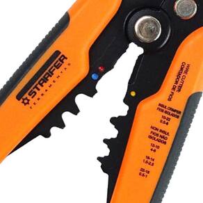O Alicate descascador e crimpador automático Starfer, com o cabo emborrachado.