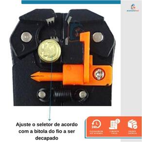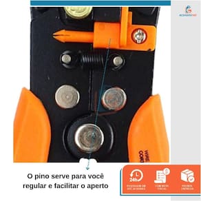 - O pino serve para você regular e facilitar o aperto; - As prensas terminais na parte inferior para prensar o fio na parte emborrachada; - Ajuste o seletor de acordo com a bitola do fio a ser decapado; - Mordentes em aço Cr12Mov, dureza Hrc 55-60, para todos os tipos de cabos 10AWG; - Para terminais isolados 22-10 AWG 0.5-6.0mm2 ; - Para terminais não isolados 12-10 AWG 4.0-6.0mm2 ; - Para terminais não isolados 16-14 AWG 1.5-2.5mm2 ; - Para terminais não isolados 22-18 AWG 0.5-1.0mm2 .
