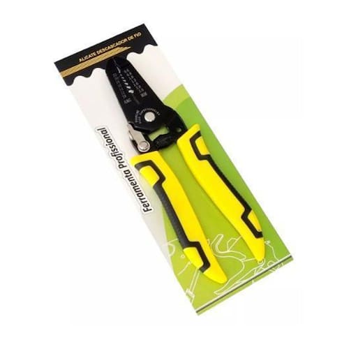 Alicate e Tesoura Descascador Decapador De Fios Elétricos Profissional 6,5 165 mm A borda da frente com dentes serrilhados para crimpagem de pequenos terminais e também evitar o deslocamento durante o corte. Formato do alicate tipo Tesoura facilita o corte e decapagem de fios de cobre, contem três furos de diâmetros diferentes para corte de fios de aço. Design de precisão com cabo anatômico para não ferir as mãos, e mola para evitar fadigas. Utilizado na montagem de componentes eletrônicos, manutenção elétrica, telecomunicações, uso residencial e profissional, etc. Cabo fabricado em borracha antideslizante para melhor agarre e controle do usuário. Para cortar e descascar fios de cobre e/ou aço se atentar que pequenos fios de aço só podem ser cortados na indicação COPPER ONLY .Atua como prensa de terminais elétricos também. Trava de Segurança para mante-lo fechado. CARACTERÍSTICAS Fabricado em Aço Carbono Comprimento: 165 mm 6,5 Diâmetro de Decapagem: 0,6-2,6 mm / 0.01-0.03 / 10-22 AWG Cor do Cabo: Azul e Amarelo a escolher no próprio anúncio Trava de Segurança: Sim Mola: Sim Cortador de Fios de Cobre: Sim Crimpador de Terminais: Sim Cortador de Fios de Aço: Sim Pacote: 01 Uma Peça Marca: I.D.E.A.+Pro