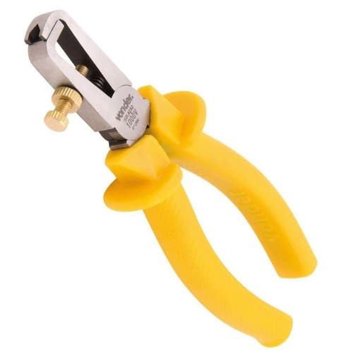 - Produzido em aço cromo vanádio, proporcionando maior durabilidade. Possui parafuso que facilita o ajuste do alicate ao diâmetro do fio, além de cabo isolado antiderrapante (ranhurado), com abas de proteção que conferem melhor manuseio.